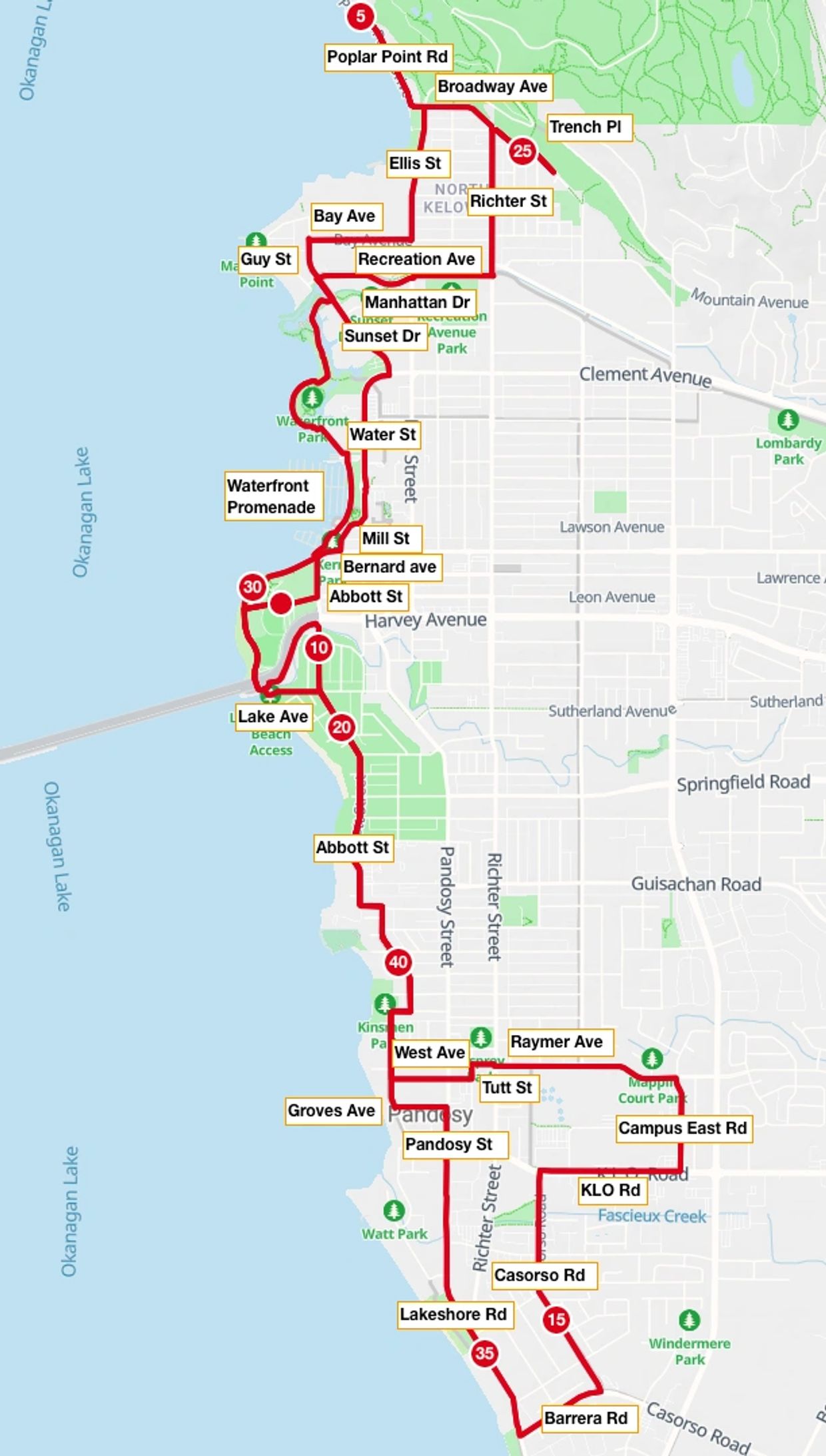 Runners travel North first and complete the loop in a counterclockwise direction. As the runners head South on Abbott St they will run on the separated bike path. The south loop is also completed in a counterclockwise direction.